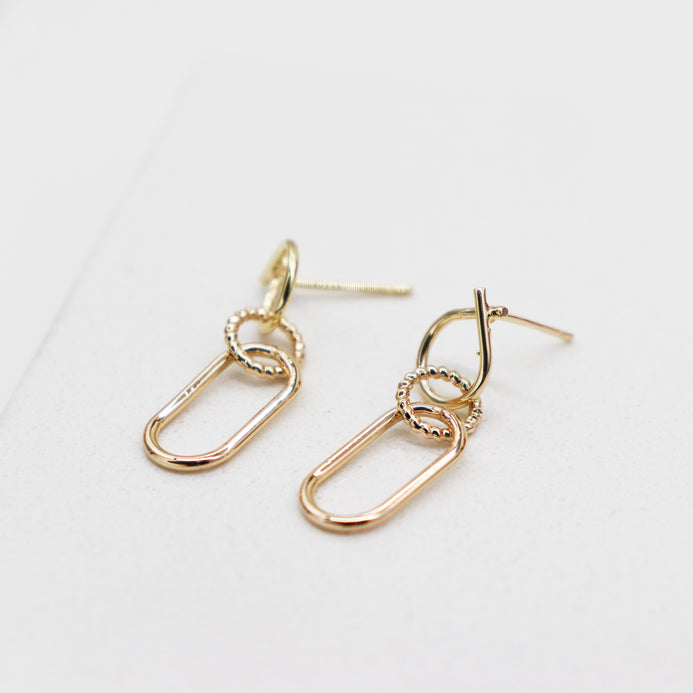 These interlocked circle-style earrings have an elegant and minimalistic style. Perfect to dress up or down, on the go for work or for a special event.
