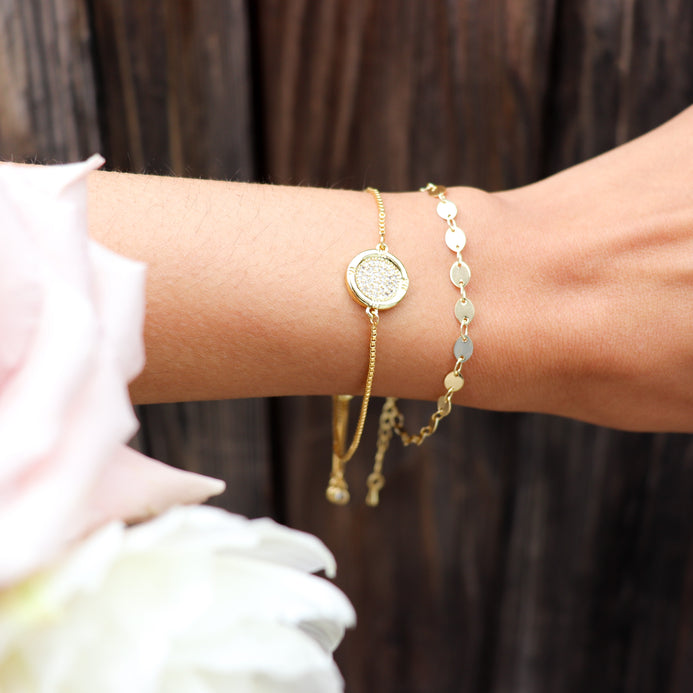 This chic gold-filled bracelet is made to last with an adjustable pull.