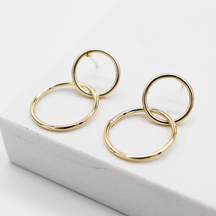 These interlocked circle-style earrings have an elegant and minimalistic style. Perfect to dress up or down, on the go for work or for a special event.