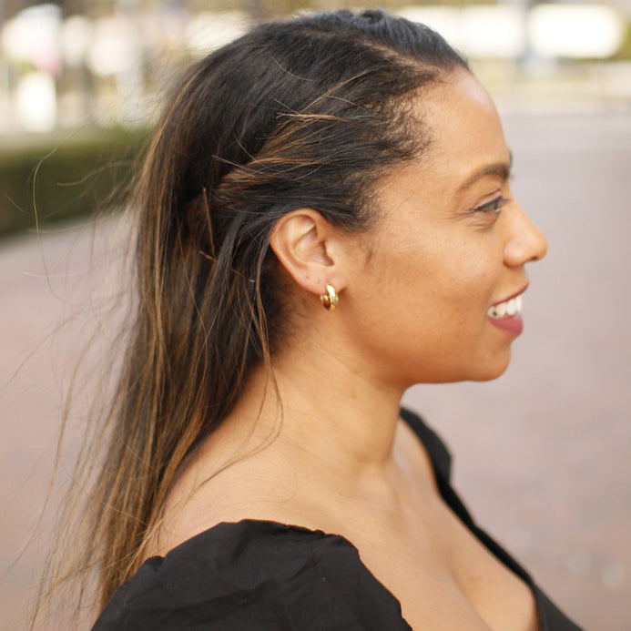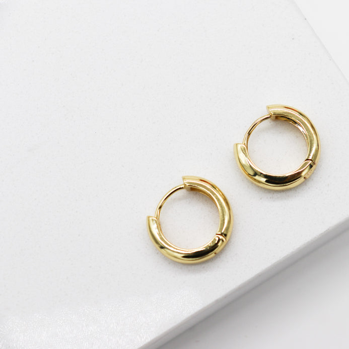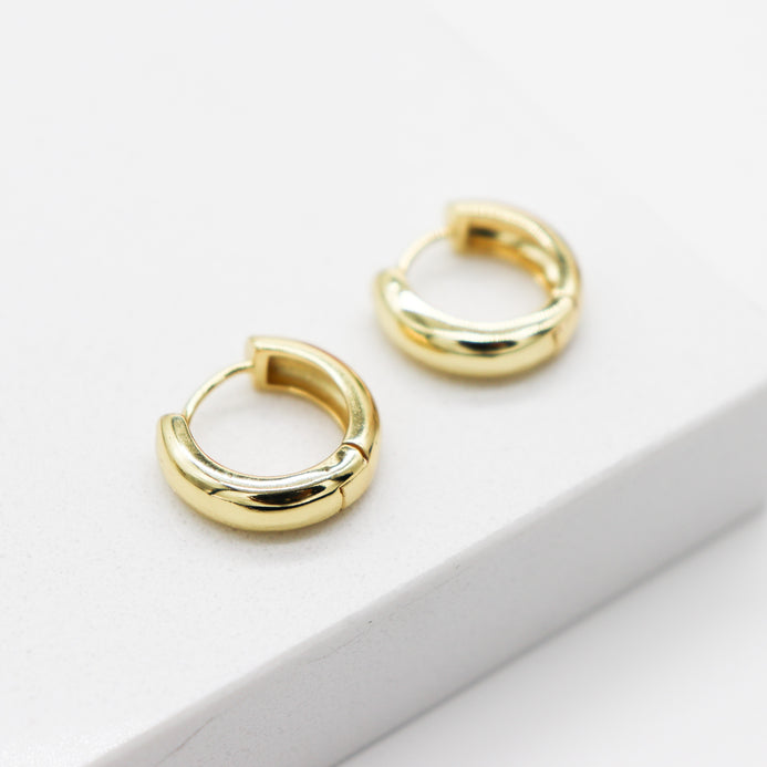 These traditional huggie style earrings have a curved back, meaning the earring simply clicks into place. Perfect to dress up or down, on the go for work or for a special event.