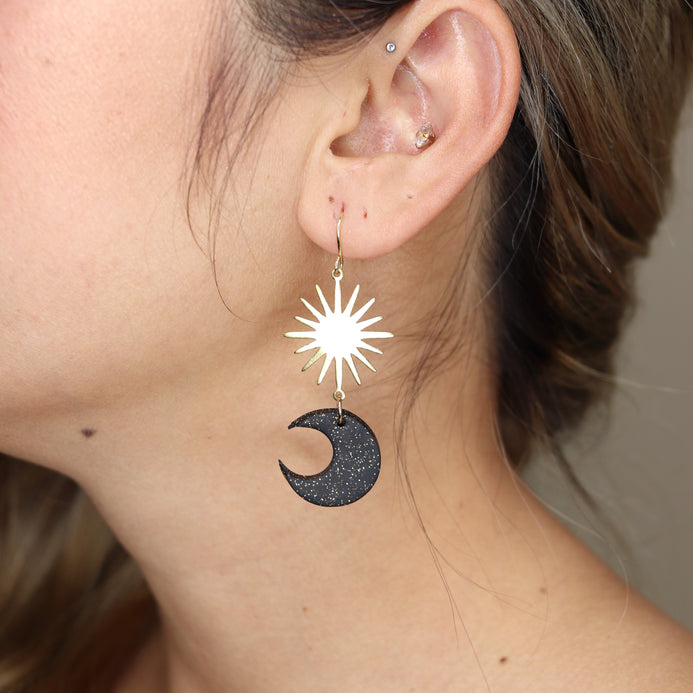 Carefully designed and slowly crafted, these handmade polymer clay moon earrings are one-of-a-kind to add to your collection, or as a gift to a friend or loved one!